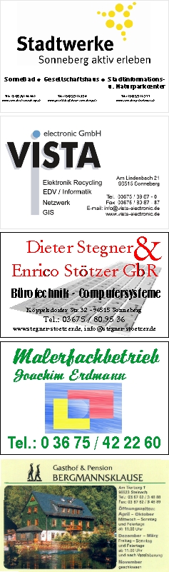 Anzeigenwerbung auf den Rad- und Wanderkarten im Landkreis Sonneberg Wir bedanken uns bei unseren Partnern für ihre finanzielle Unterstützung, durch die eine Erneuerung und die Pflege der bestehenden Rad- und Wanderkarten möglich ist. Übersicht der Kartenstandorte und Anzeigenplanung
