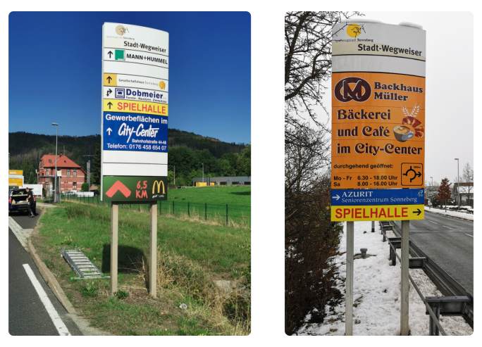 Home | RIKON-Pylone | RIKON-Schilderkatalog | Stadtwegweiser und Ankündigungsschilder | Luftbilder | Kontakt | Impressum / Datenschutz